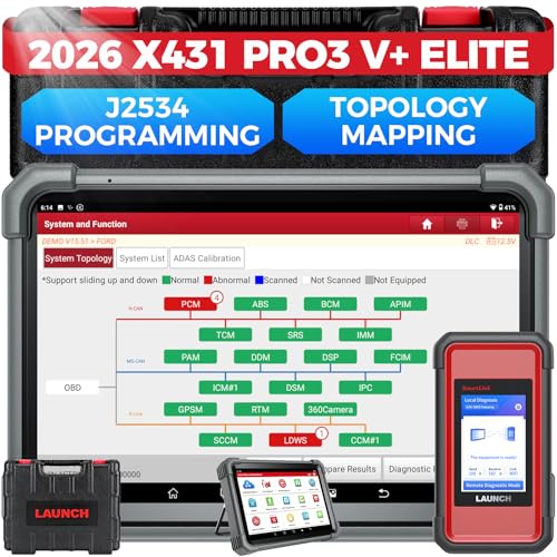 Launch X431 PRO3 V+ Elite, 2026 SmartlinkC 2.0 Bidirectional Scan Tool with J2534 Portocol, HD Trucks Scanner, 10.1 inch, Topology Map, 60+Service, Online Code, CANFD/DoIP/D-PDU, FCA, 2 Yrs Update