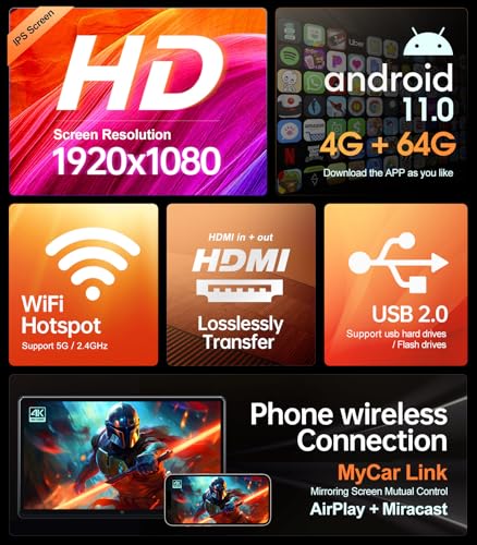 【Wireless Mobile Phone link】 This tv for Cars supports iOS AirPlay and Android Miracast mobile phone screen mirroring function. In addition, the MyCar Link App can be used to Sync Screen and mutual control of the mobile phone and Car TV, which makes it easier for you to play videos for your children in the driver’s seat.