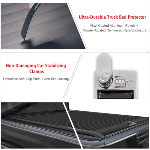 5.5FT Truck Bed Cover Retractable Hard Tonneau Cover for 2015-2026 Ford F-150 (66″) – Black Aluminum Password Lock Weatherproof