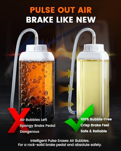 【 Say Goodbye to Spongy Pedals: Advanced Air Removal Technology for Winter Safety 】 – Worried about air pockets after a brake service? Our patented pulse technology effectively evacuates air and old fluid from the entire system. Watch as dark, bubbly waste is replaced by clean, new fluid through isolated dual lines. Maintain fluid integrity for a confident, firm pedal feel, crucial for winter driving.
