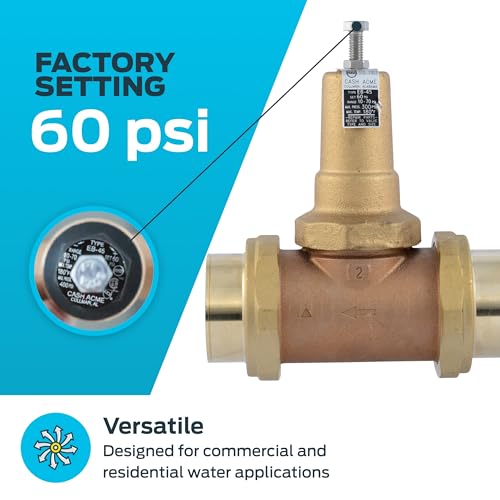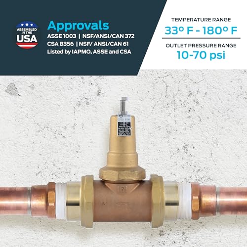 RATING: The water pressure reducer valve is rated to 60 PSI and is easily adjustable between 10 to 70 PSI; Suited for either cold or hot (to 180 degrees F) water service; Assembled in the USA