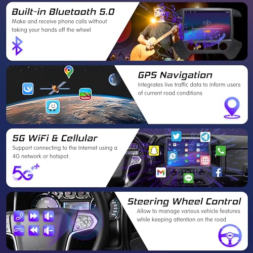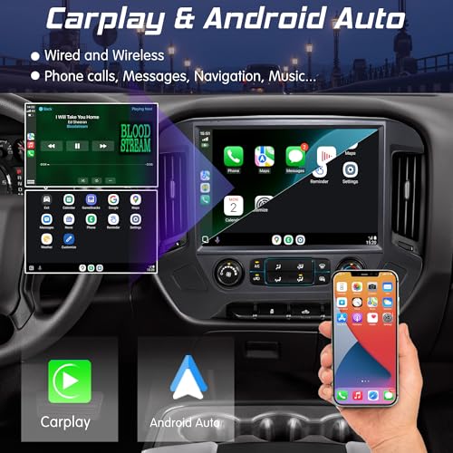 【Integration with Mobile Devices】Replacement radio for Chevy Silverado supports smartphone integration through CarPlay and Android Auto(Wired and Wireless), enabling seamless access to navigation apps, contacts, and enjoy music