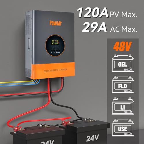 PowMr 5000W Hybrid Solar Inverter 48VDC to 110V/220VAC, 5kW Off-Grid w/Built-in 120A MPPT Charge Controller, Pure Sine Wave Inverter for 48V Lead-Acid and Lithium Battery, Peak Power:15000W