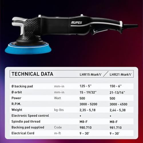 Revolutionary Performance: The RUPES LHR21V BigFoot Mark V features a 6″ backing pad and a 1″ orbit, providing exceptional polishing performance ideal for both professionals and hobbyists