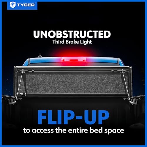 FLIP UP FOR FULL BED ACCESS – T4’s four-fold design gives you the freedom to choose how much bed space you need: fully folded, three-quarters, half, or open. Its slimmer quad panels provide more usable access than traditional tri-folds. Finished with low-profile side rails, it delivers a clean, flush fit that elevates your truck’s look. | This specific model flips-up without blocking the third brake light to improve road safety.