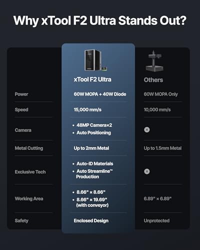 Be the first to review “xTool F2 Ultra 60W MOPA & 40W Diode Dual Laser Engraver, 100+ Color Metal Engraving, Dual 48MP Cameras, Auto Streamline, 15,000mm/s Ultra-Fast, AI Powered 3D Fiber Laser Cutter and Engraver Machine”