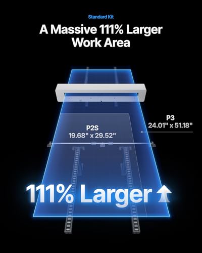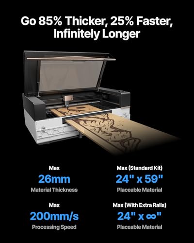 Almost 2x Larger Work Area & Thicker Materials: Supports a 24.01″ x 51.18″ work area with 3-axis (X+Y+U) motion control, a max 26mm material thickness, and 200mm/s speed.